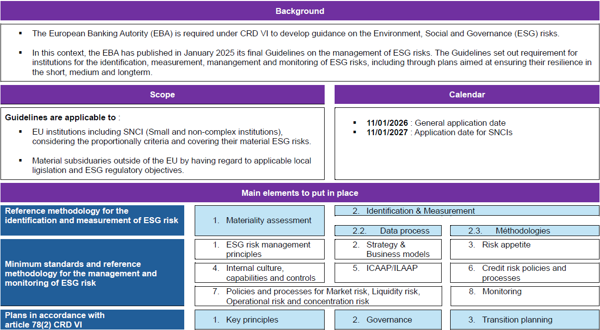 The European Banking Authority (EBA) has published on January 9th, 2025 its final Guidelines on the management of Environmental, Social and Governance (ESG) risks.